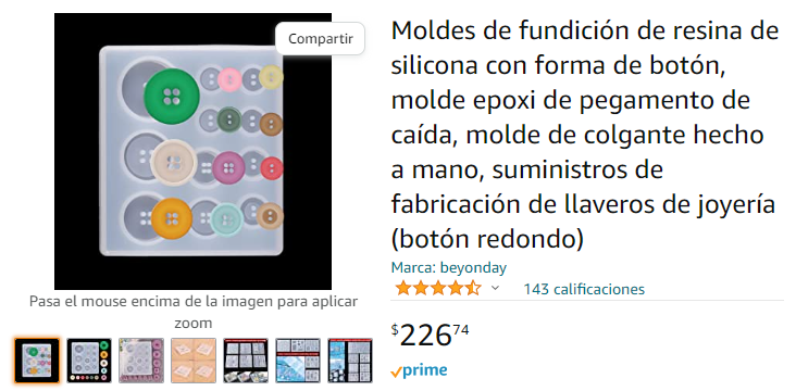 Consigue el molde para hacer botones de resina en Amazon, CLIC en la imagen para ir a Amazon.