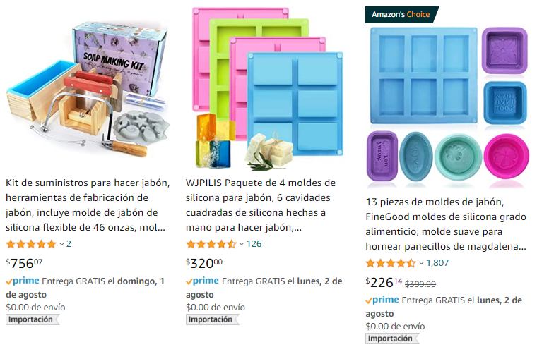 Consigue los moldes de jabón en Amazon con envío gratis a domicilio: